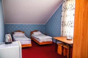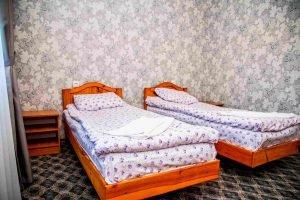 2 - х местный. В номере: спальная мебель, ТВ, холод-к, сан. узел, душ , эл. чайник, полотенца.