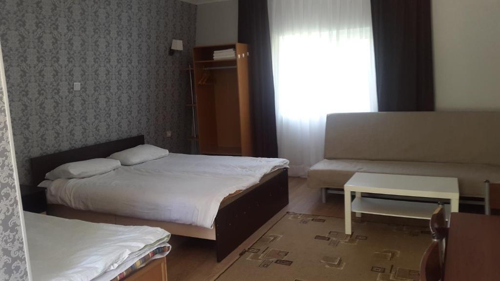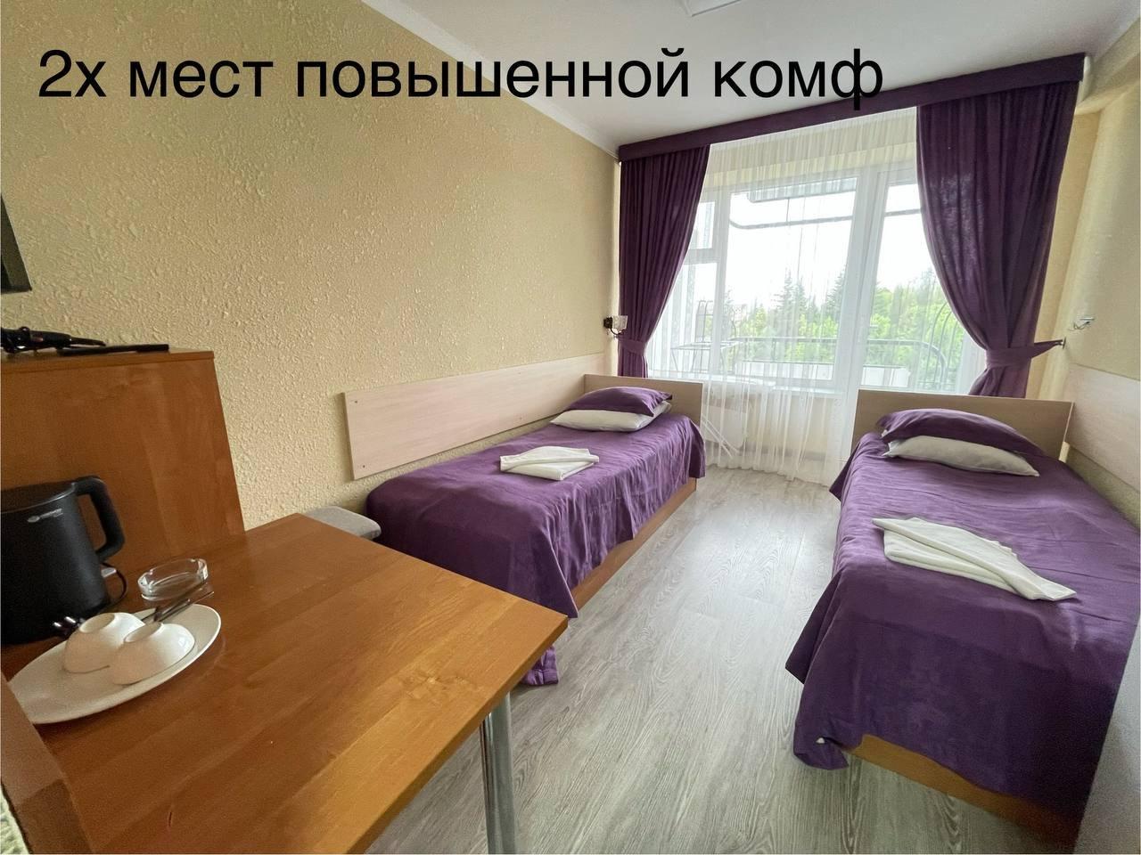 3х местный номер Полулюкс в коттедже, Однокомнатный номер, две 1-спальные или одна 2-спальная кровати, диван-кровать, шкаф, спутниковое ТВ, холодильник, чайник и набор чайной посуды, фен, набор полотенец. WC и душевая кабина.