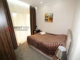 4-х комнатный. В номере: сан узел, душ, ТВ, холод-к, чайник, балкон или терраса, ротанговая мебель: диван, два кресла, стол.