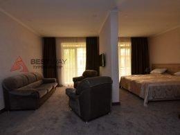 2-х комнатный, с кухней. В номере: сан узел, душ, ТВ, холод-к, чайник, балкон или терраса, ротанговая мебель: диван, два кресла, стол.