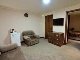 2-комнатный 4-местный Номера на 3 этаже. холодильник, телевизор со спутниковым ТВ, шкаф, зеркало, набор чайной посуды, чайник, сейф; с/узел, душевая кабина.