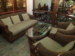 В номере: сан узел, душ, ТВ, холод-к, чайник, ротанговая мебель: диван, два кресла, стол, без балкона.