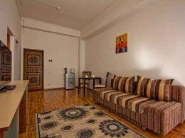 Номер–на 5- ом этаже с прекрасным видом на озеро. Номер 4-х местный. 3-х комнатный номер (гостиная, 2 спальные комнаты). В номере: спутниковое ТВ, холодильник, мягкая мебель, столик, шкаф для одежды, тумбочки, гардероб. В спальне – четыре кровати полуторки . Есть возможность 2-х. дополнительных мест.