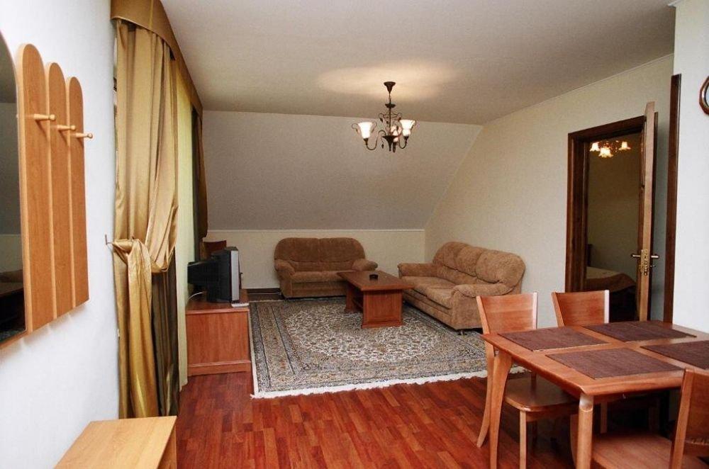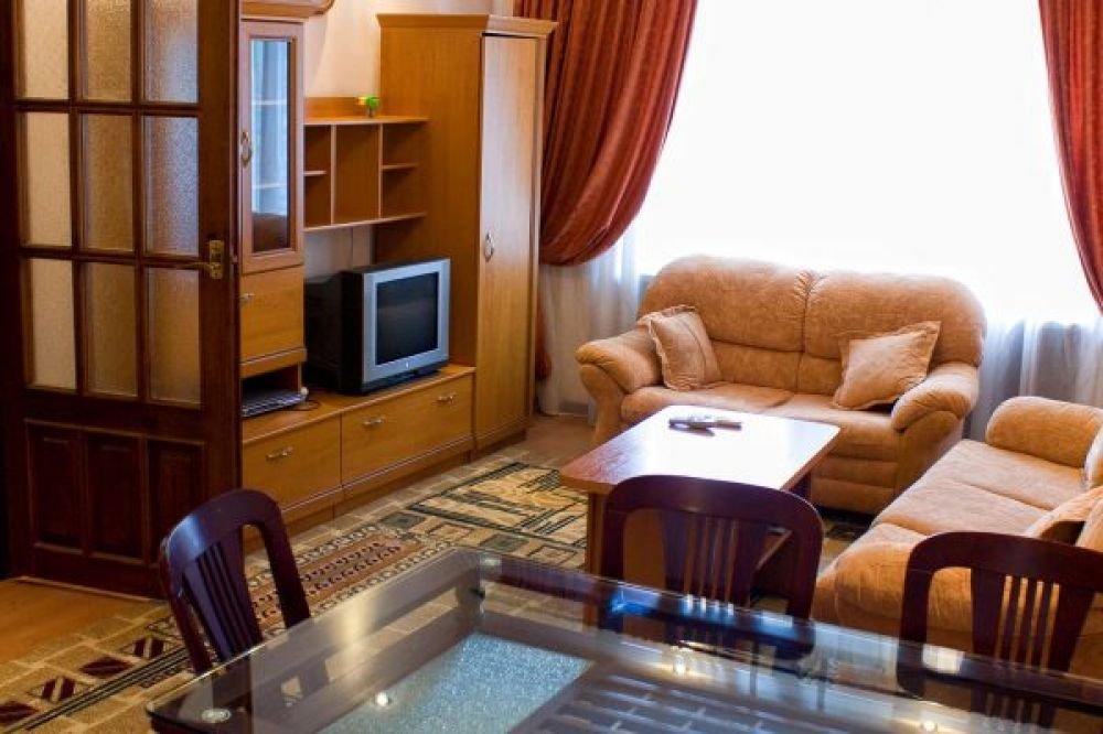 3-х комнатный номер в 2-х этажном коттедже. В номере: современная мебель, ванна с лечебной минеральной водой, джакузи, биде, камин, теплые полы, спутниковое ТВ, телефон, сейф, интернет, кухня, терраса с плетеной мебелью.