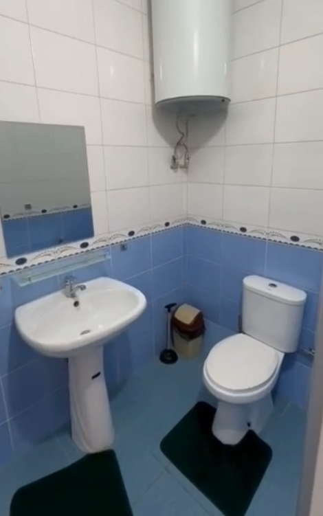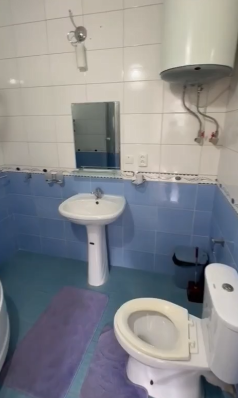 на 1 этаже большой зал, совмещенный с кухней (кухня полностью оборудована) и сан. узел. В зале диваны, телевизор, обеденный стол, стиральная машина