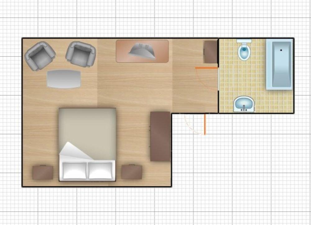 Размер номера: Спальня: 15,3 кв.м., Сан.узел: 3,5 кв.м., Терраса: 11 кв.м.