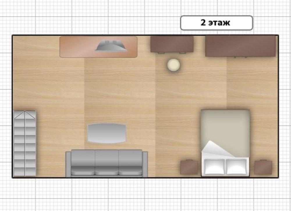 Размер номеров: Гостиная 1 этаж: 29,23 кв.м., Спальня 2 этаж: 19 кв.м., Сан. узел: 3,91 кв.м