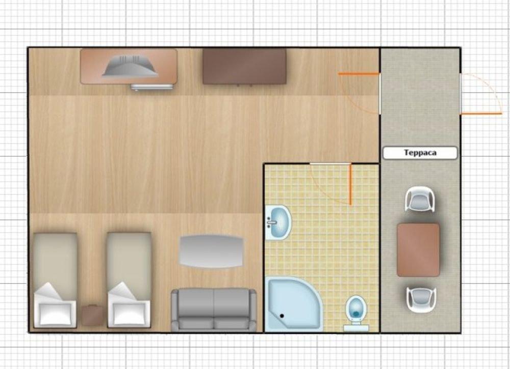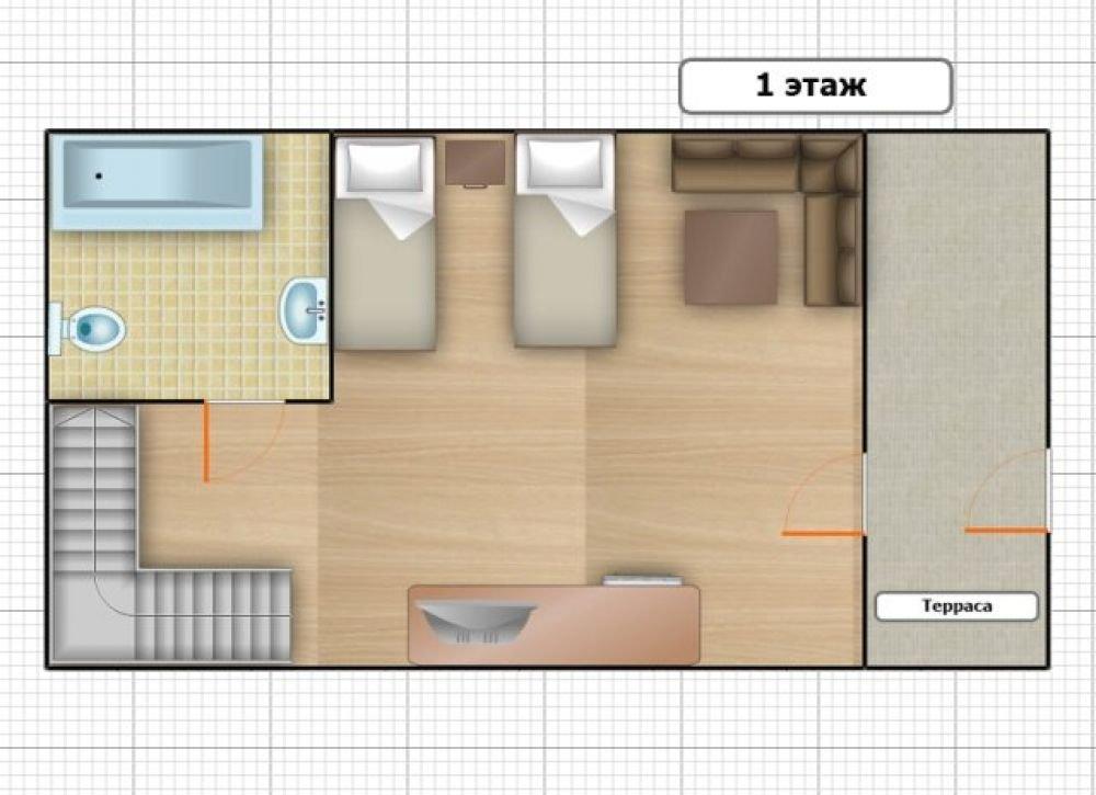 Однокомнатный номер с двумя односпальными кроватями. Номер с террасой или с верандой.