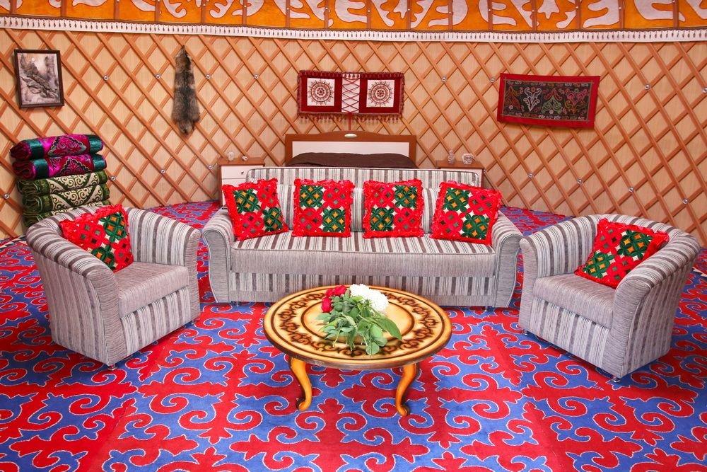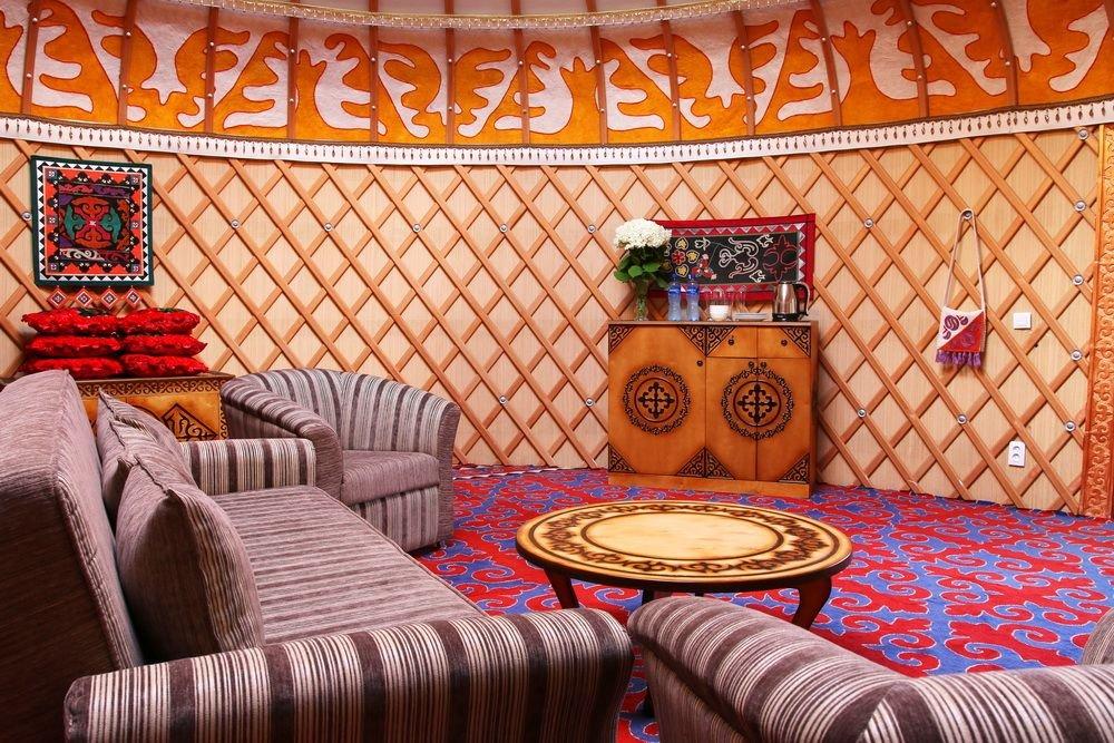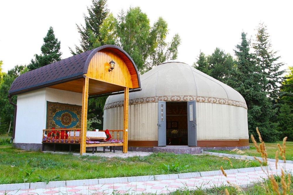 Национальные юрты с двуспальными кроватями расположены в центре территории.