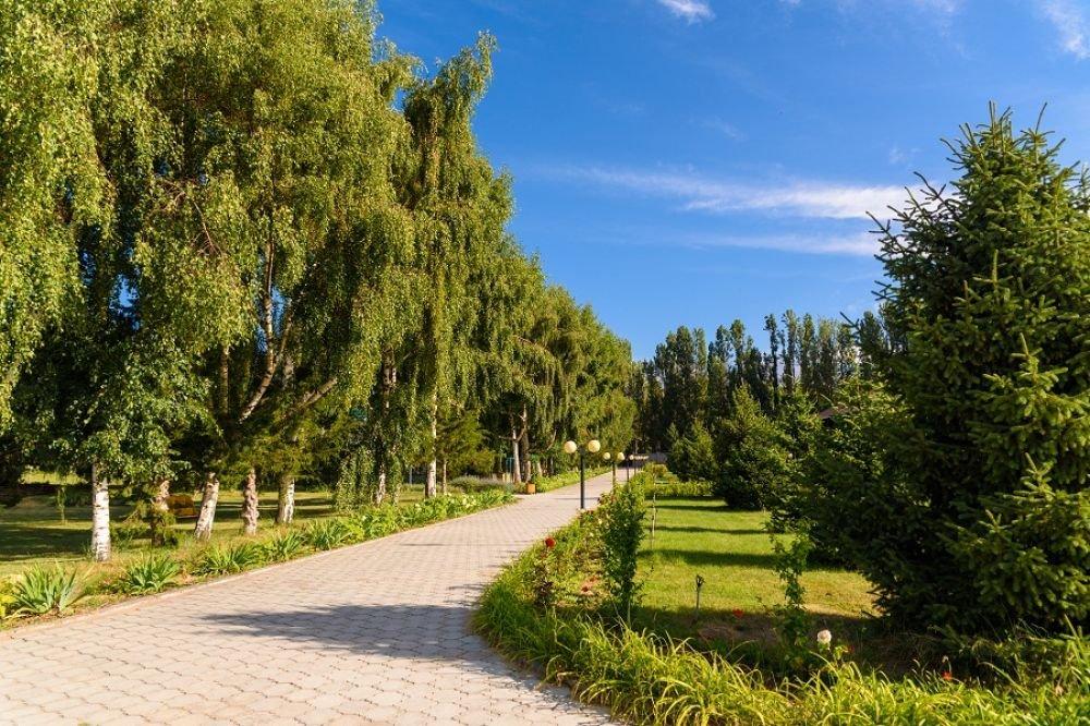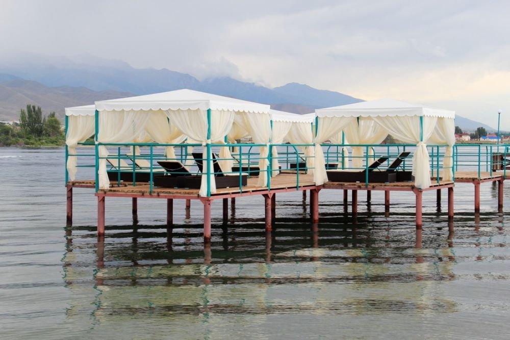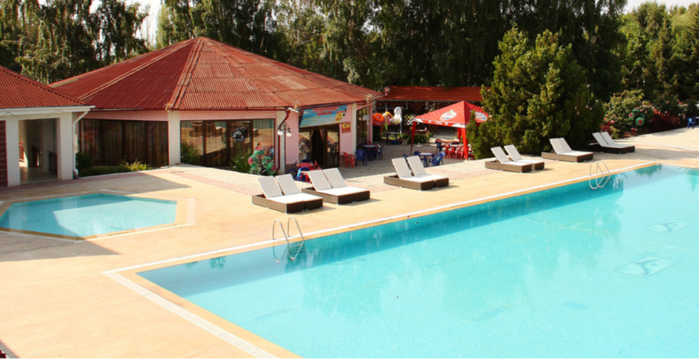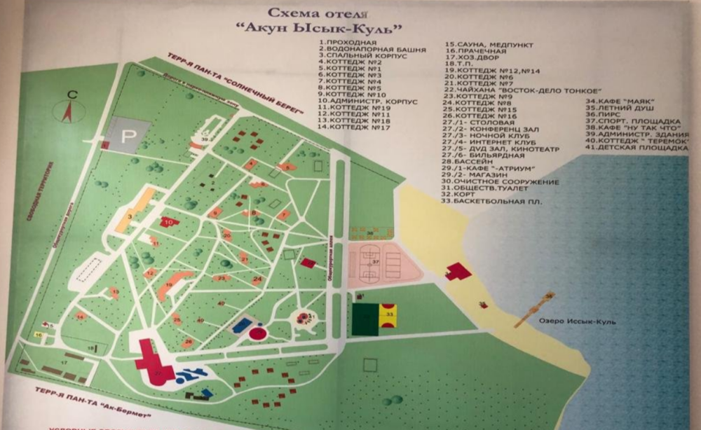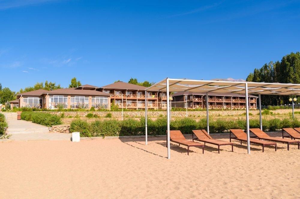 расположен на северном берегу озера Иссык-Куль, в курортной зоне Кара-Ой, возле города Чолпон-Ата. На обширной озелененной территории есть все необходимое для спокойного отдыха всей семьей на лоне природы и проведения деловых встреч.