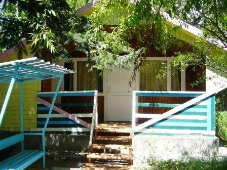 4-х местный коттедж. Состоит из двух комнат, одна спальня, гостиная. Санузел (душ, туалет), холодильник, телевизор, посуда, стол, стул итд.