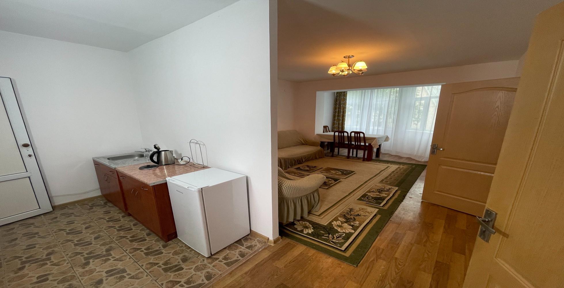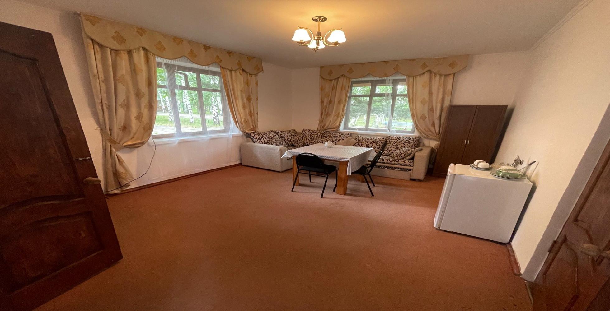 4-х местный номер категории. Состоит из двух спальни, водной одна семейная кровать, а в другой две раздельные, также есть гостевая комната и отдельная мини зона для кухни. В номере есть санузел (душ, туалет) холодильник, телевизор, посуда