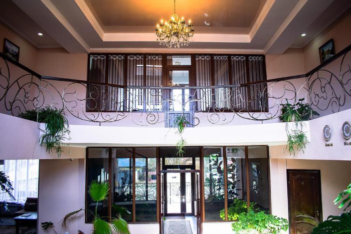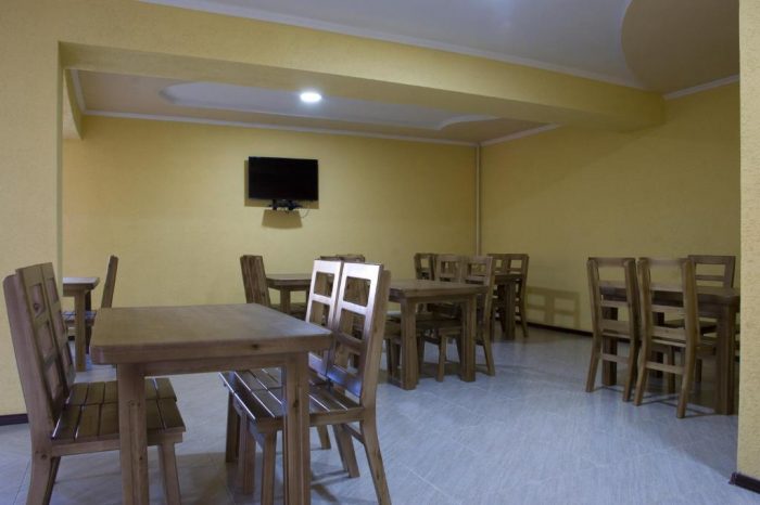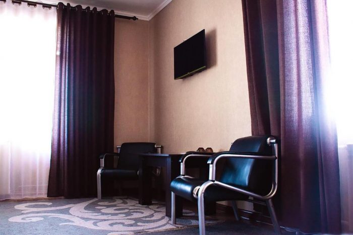 Гостиница расположилась в центре города Каракол, которая работает с ноября 2015 года. В гостинице имеется внутренние и наружные системы видеонаблюдения, сотрудничаем круглосуточной службой охраны ,охранно-пожарная безопасность соответствует всем требованиям пожарной безопасности, установлены  во всех необходимых местах пожарные сигнализации. Установлены два вида системы отопления при форс-мажорных обстоятельствах используется генератор.  Вашим услугам конференц-зал на 60 человек ,теплый с дополнительными кондиционерами имеются все необходимые оборудования для проведения семинара это –проектор, доска передвижная, экран большой, магнитно-маркерная доска, флипчартка, микрофон с усилителем, бесплатныйWIFI,имеется парковочная площадь. К Вашим услугам своевременно предоставляем обед, кофе-брейк, ужин. Имеется 16 номеров из них одноместные, двухместные, трехместные номера, где имеется  душ, санузел, телевизор, холодильник, обогреватель, интернет, шкаф, стол, стулья, комплект постельного белья и туалетные принадлежности. Имеется сауна с бассейном и все виды массажа.Предоставляем все необходимые документы, а также работаем по безналичной формой расчета.