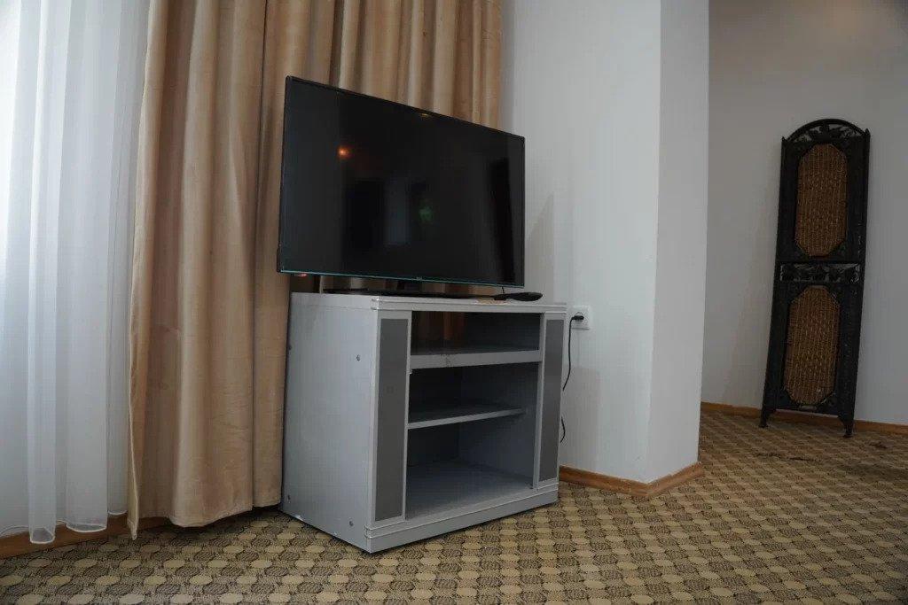 1-комнатный. В номере: сан узел, душ, ТВ, спутниковая антенна, посуда, трюмо, шкаф, кухонный стол, кухонный уголок, стулья, холод-к, сушилка.