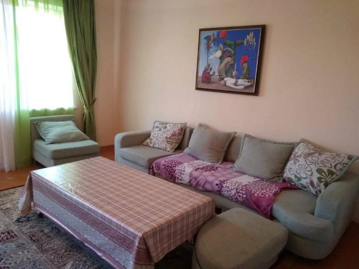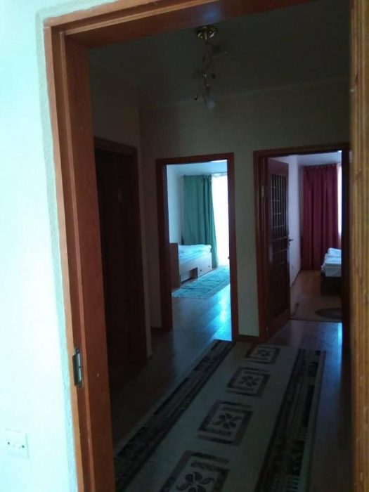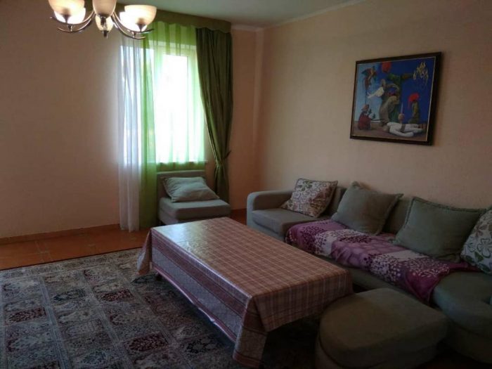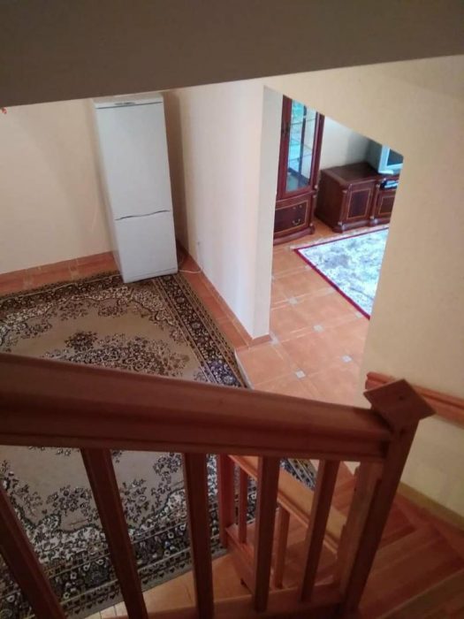 1 этаж: прихожая, кухня: кухонный гарнитур, кухонный уголок, микроволновая печь, плита, стиральная маш.холод-к, эл. чайник, посуда. Гостиная-холл: мягкая мебель, ТВ, гардеробная, гостевой санузел. 2 этаж: 3 спальни, ванная комната, небольшой двор можно ставить 2 автомашины