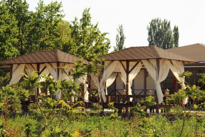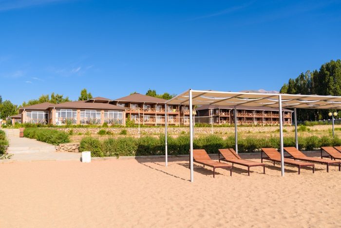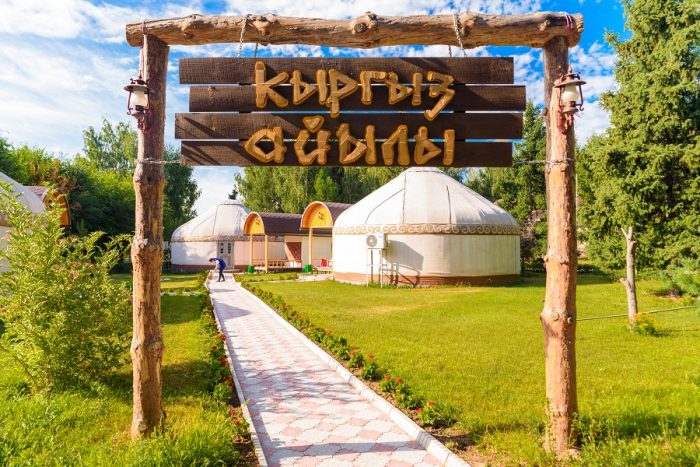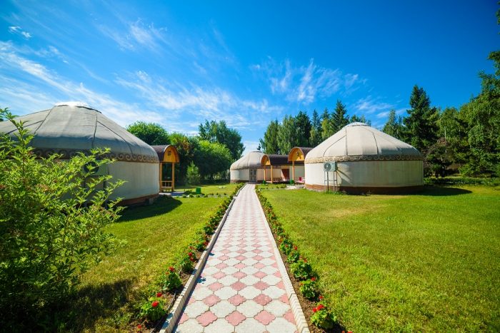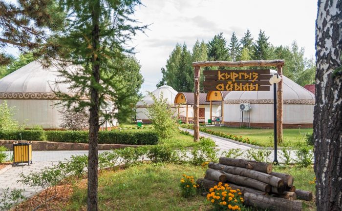 Национальные юрты с двуспальными кроватями расположены в центре территории.