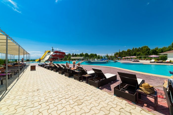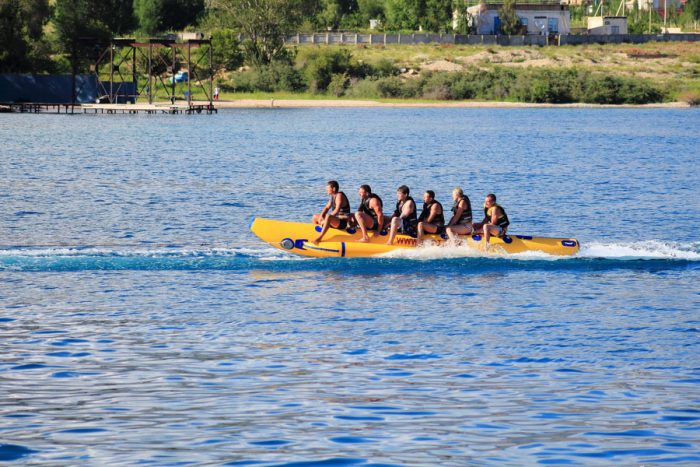 В 200 метрах от гостиничных корпусов отдыхающих ждет песчаный пляж с собственным пирсом, оборудованный зонтиками, шезлонгами и беседками. Отсюда гости могут начать прогулку на катере, яхте или теплоходе, прокатиться на банане. Центру отдыха есть чем заинтересовать любителей дайвинга и рафтинга.
