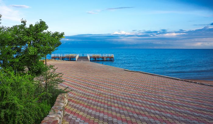 AZURE Sport Resort – отель на берегу озера Иссык-Куль. Для активного отдыха круглый год у нас есть всё! Новый пятиэтажный современный отель с лифтом, уютными номерами со всеми удобствами. Люди с ограниченными возможностями здоровья и родители с детьми в колясках будут отдыхать комфортно на территории AZURE Sport Resort . Есть лифт и удобные пандусы. Вы можете спокойно от дверей номера и до пляжа везти ребенка в коляске. Здание отеля находится в 100 метрах от собственного пляжа. Охраняемая огражденная территория, клумбы, дорожки для прогулок.