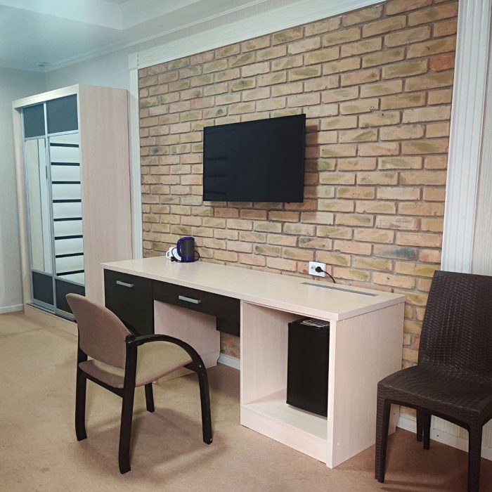 Двухместный номер с двуспальной кроватью оборудован всем необходимым для комфортного размещения как для работы, так и для отдыха.