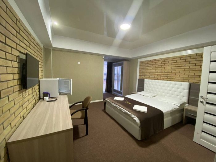 Двухместный номер, оснащен всем необходимым для длительного пребывания на отдыхе с семьей: в номере для Вас большая двуспальная кровать с ортопедическим матрасом+дополнительное место.