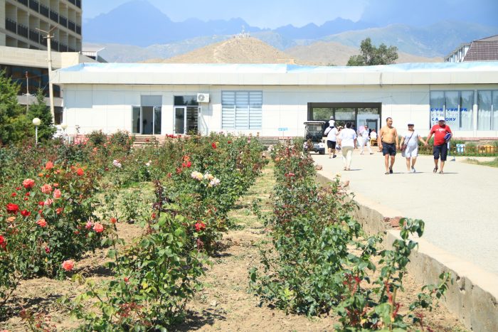 Санаторий «Голубой Иссык-Куль» в центре Чолпон-Аты — пожалуй, самый известный из «старожилов» побережья. Круглый год принимает гостей приезжающих на лечение и отдых со всех уголков бывшего Советского Союза.